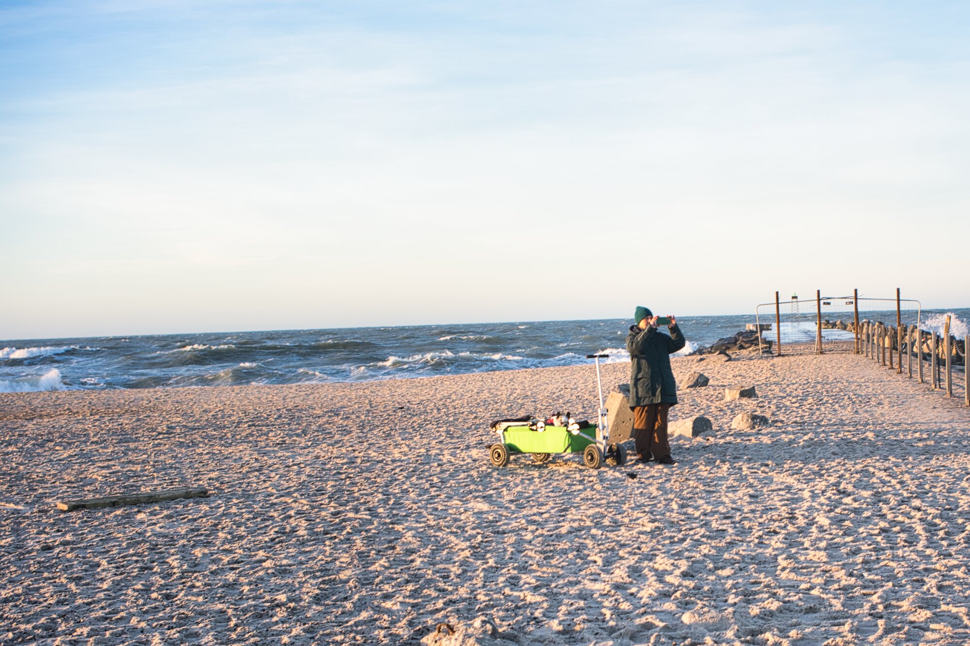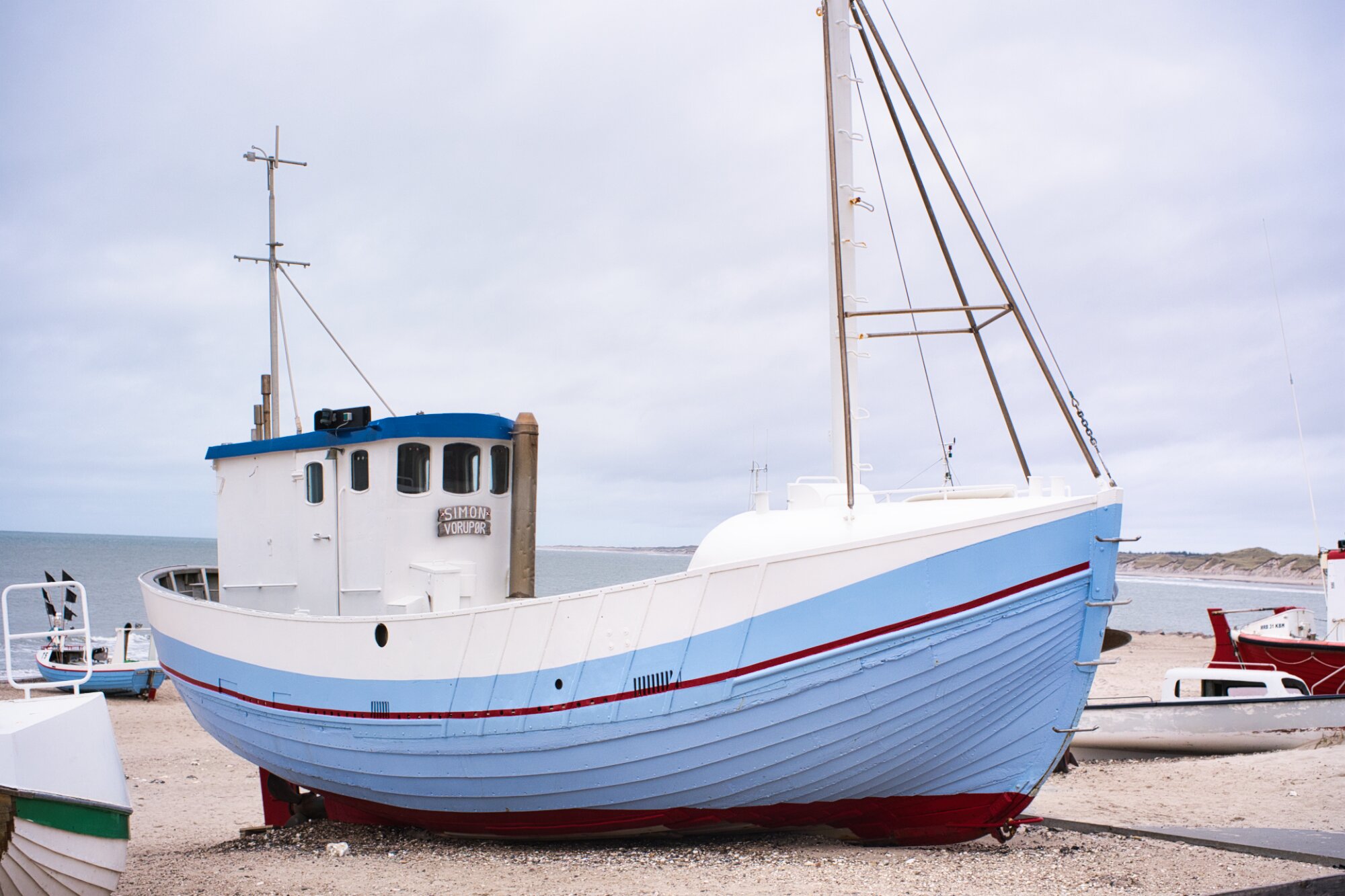 Am 1. Weihnachtstag schliefen wir vier erst einmal richtig lange aus. Nach einem herrlichen Frühstück beschlossen wir den Tag in Vorupør zu verbringen. Am frühen Nachmittag wanderten wir durch die Dünen und am Strand zum kleinen Ort mit dem bekannten Hafen. Okay Hafen trifft es nicht ganz. Wie an der vielen Ort an der Küste liegen die Schiffe einfach auf dem Strand. Einige Surfer konnten wir auch bei dem Versuch die kleinen Wellen zu reiten beobachten. Diesen Küstenabschnitt nennt man auch Cold Hawaii. Dann kaufen wir noch geräucherten Hering, Lachs und zwei Fischfrikadellen in der gleichen Räucherei. Noch einen Kaffee auf den Weg und wir machten uns langsam durch den Ort zurück zu unserem mobilen Zuhause. Es dunkelte schon langsam und die Weihnachtsdeko im Camper zauberte eine schöne Stimmung. Den Abend verbrachten wir mit Lesen und Netflix schauen. Weit vor Mitternacht gingen wir ins Bett.